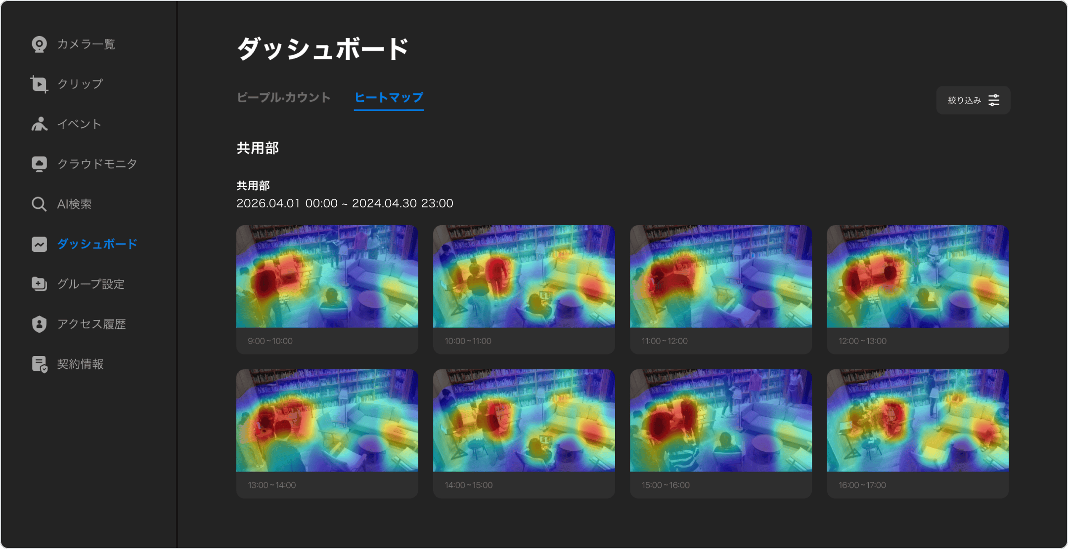 フロアや施設のカメラをグループ単位で整理・管理し、監視効率を向上